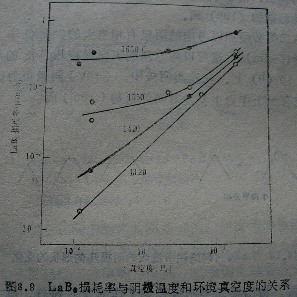 LaB6陰極是一種特殊結(jié)構(gòu)的晶體,由于它具有金屬的良好導(dǎo)電性及逸出功低,當(dāng)它工作在1400~1680℃時,可以獲得0~100A/cm2的直流發(fā)射電流,遠(yuǎn)勝于氧化物和純金屬陰極;同時它又具有很好的熱穩(wěn)定性和化學(xué)穩(wěn)定性。