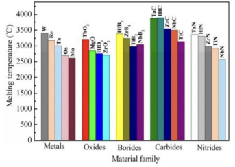不同類型的耐火材料熔點(diǎn)對比--碳化鋯的性能優(yōu)勢