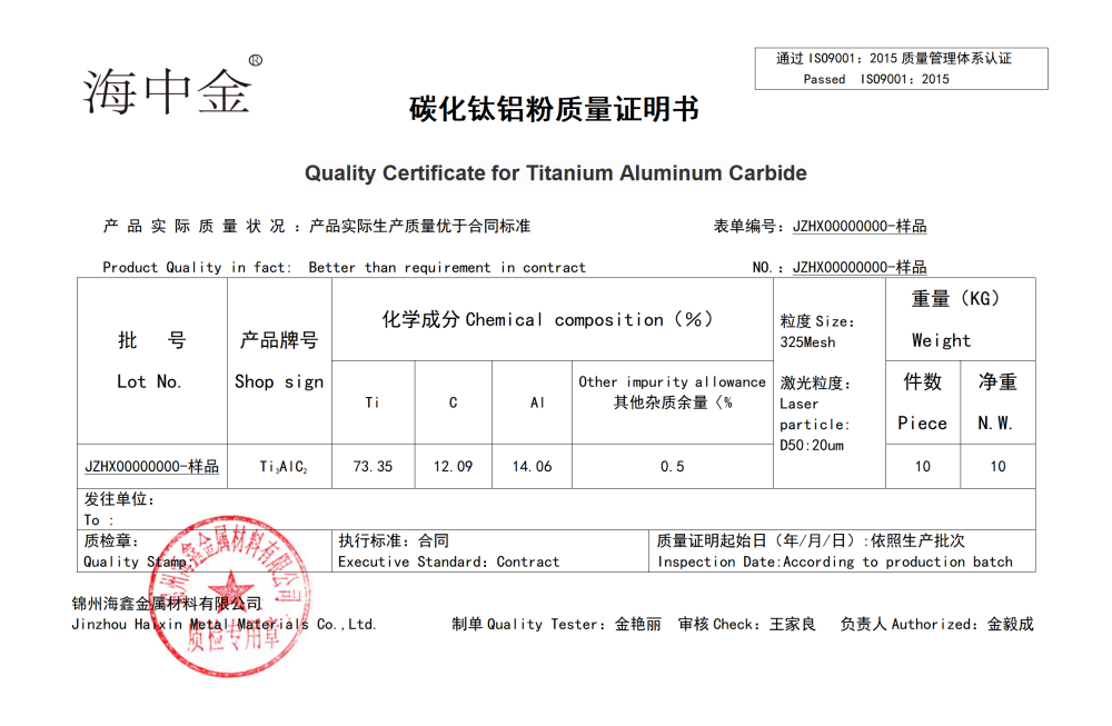 產(chǎn)品名稱:碳化鋁鈦(Ti3AlC2