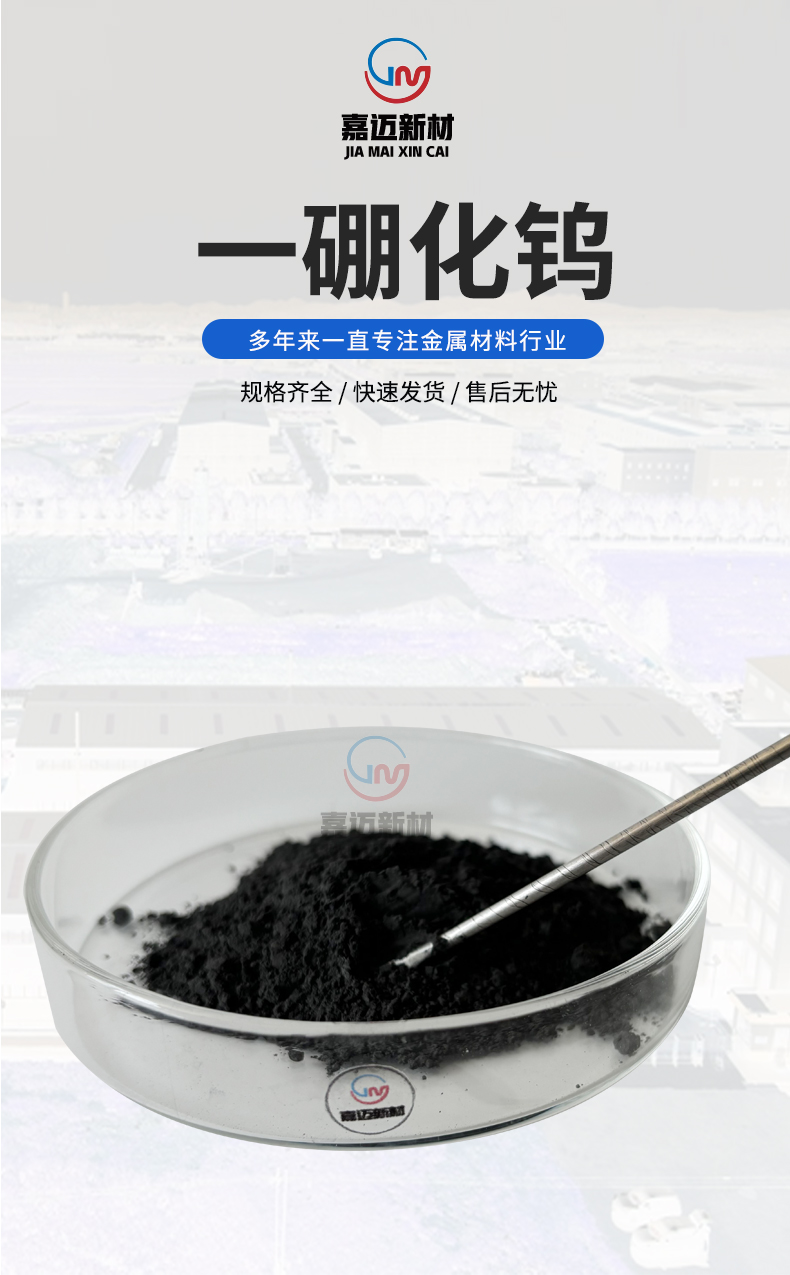 產(chǎn)品名稱:一硼化鎢(WB) 規(guī)格:0.8-10um(D50)   形貌:不規(guī)則 顏色:黑灰色  特點(diǎn):高熔點(diǎn)、‌高硬度、‌化學(xué)穩(wěn)定性、‌良好的金屬導(dǎo)電性、‌以及優(yōu)良的耐磨性和高韌性 用途:耐磨件的耐磨涂層及半導(dǎo)體薄膜、‌鉆井、‌機(jī)械制造、金屬加工、‌國(guó)防工業(yè)、‌醫(yī)藥、‌環(huán)境修復(fù)等領(lǐng)域