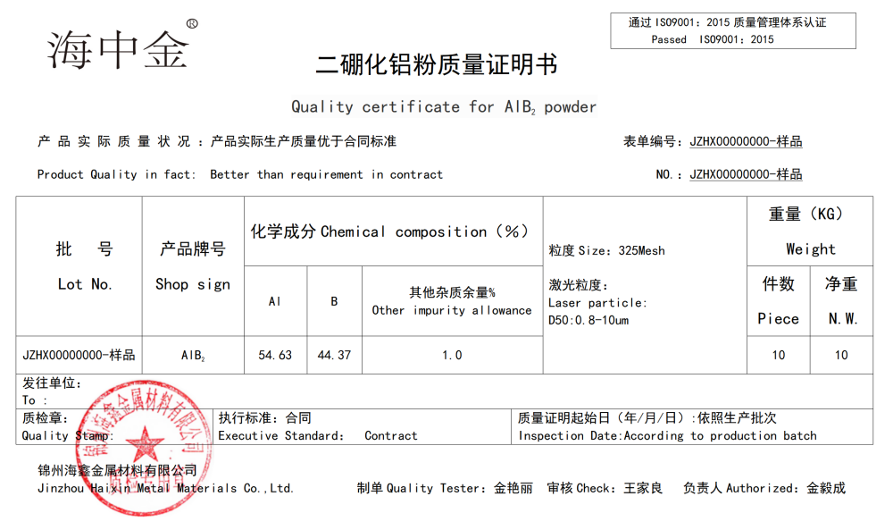 產(chǎn)品名稱:二硼化鋁(AlB2