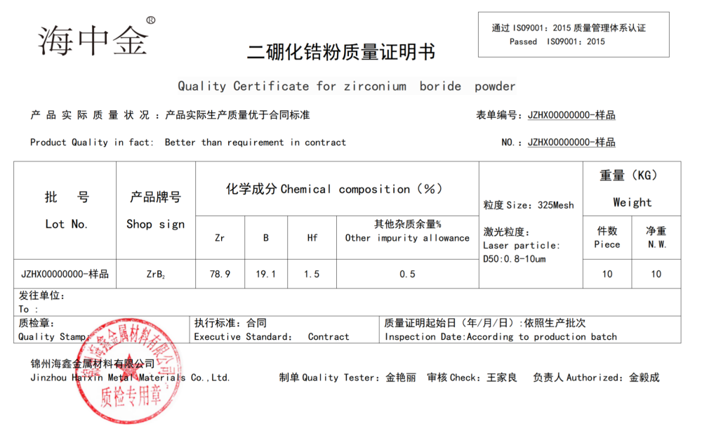 產(chǎn)品名稱:二硼化鋯(ZrB2