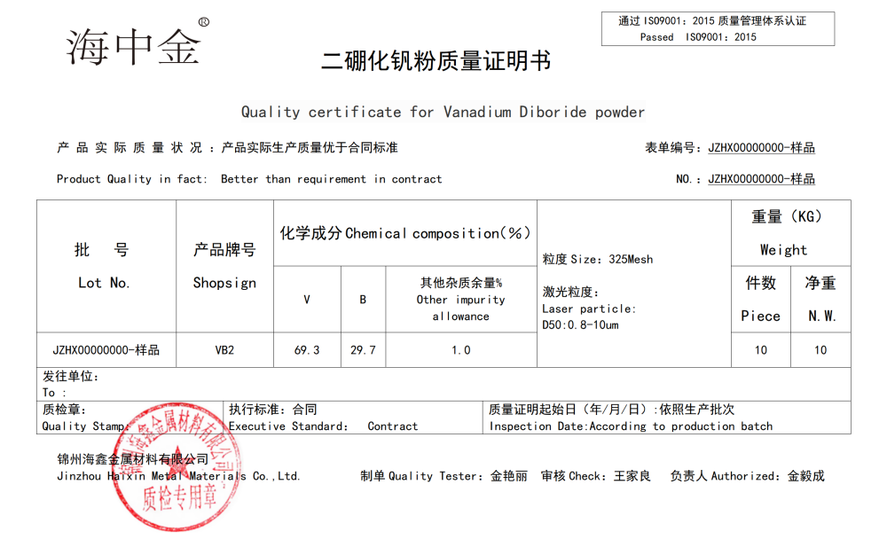 產(chǎn)品名稱(chēng):二硼化釩(VB2