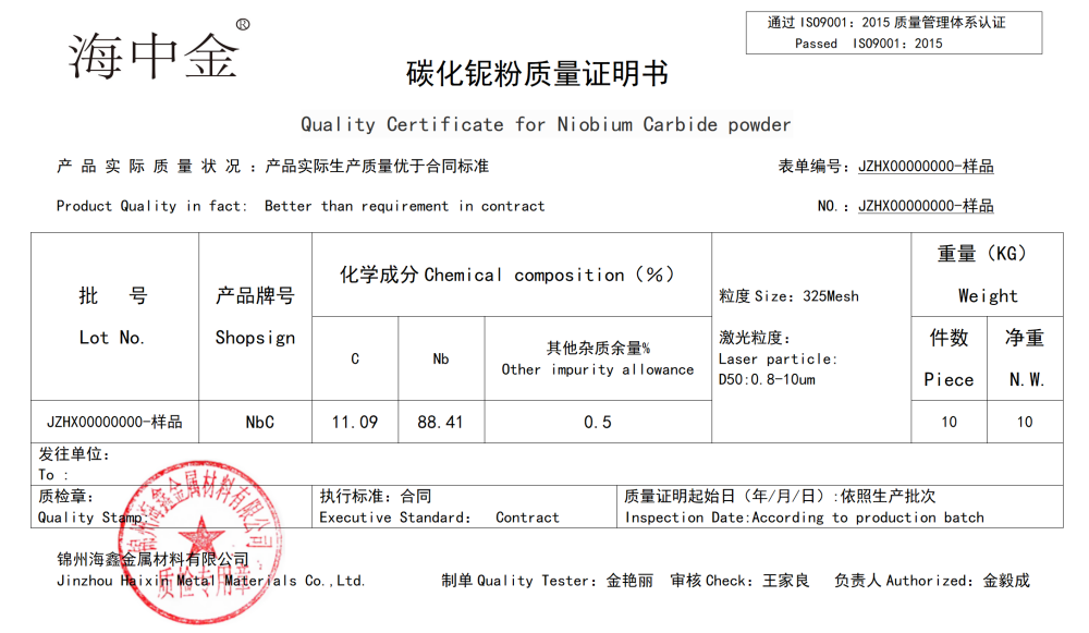 產(chǎn)品名稱:碳化鈮(NbC) 規(guī)格:0.8-10um(D50)   形貌:不規(guī)則 顏色:黑灰色  特點(diǎn):優(yōu)異的高溫強(qiáng)度、‌硬度、‌彈性模量和耐腐蝕性 用途:航空航天、‌汽車制造、‌電子工業(yè)等領(lǐng)域