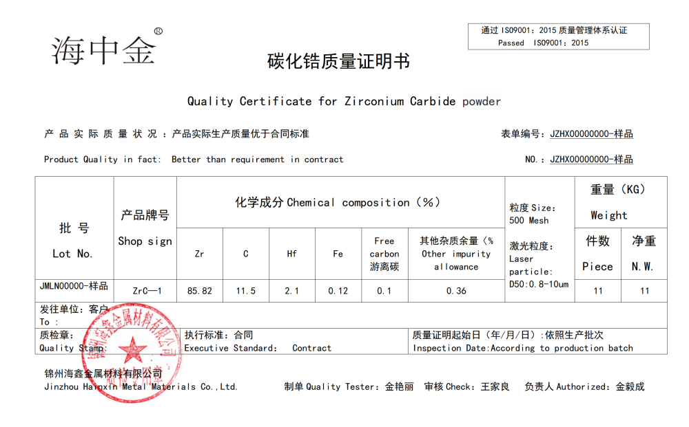 產(chǎn)品名稱:碳化鋯(ZrC)