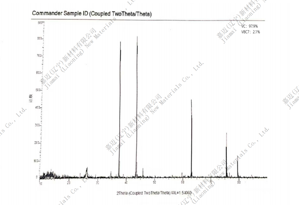 3.高硬度:碳化釩具有極高的硬度,在Mohs硬度測試中可以達到9.0級以上,比鋼鐵、鋁等常見金屬硬度高出很多。