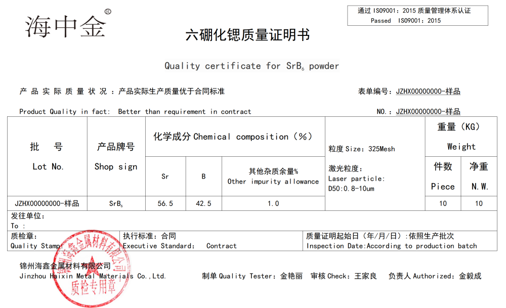 產(chǎn)品展示 當前位置:首頁產(chǎn)品展示—六硼化鍶 Strontium hexaboride (SrB6)