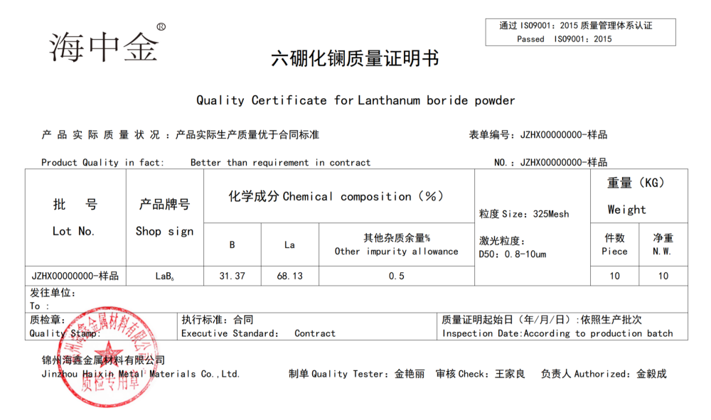 產(chǎn)品展示 當(dāng)前位置:首頁產(chǎn)品展示—六硼化鑭 Lanthanum boride(LaB6)