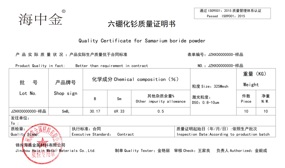 產(chǎn)品展示 當(dāng)前位置:首頁產(chǎn)品展示—六硼化釤 Samarium boride(SmB6)
