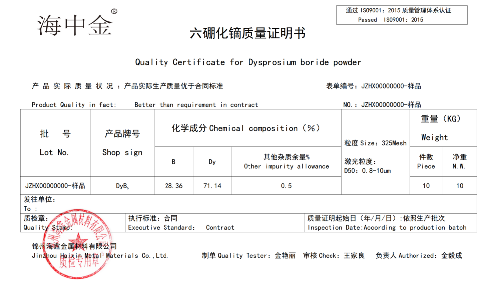 產(chǎn)品展示 當(dāng)前位置:首頁(yè)產(chǎn)品展示—六硼化鏑 Dysprosium boride(DyB6)