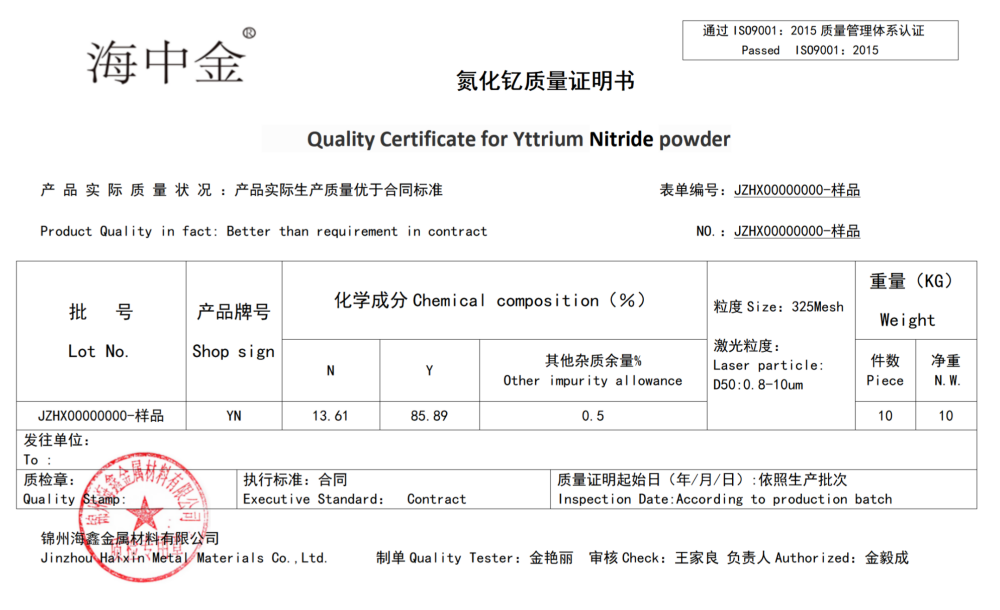產(chǎn)品展示 當前位置:首頁產(chǎn)品展示—氮化釔 Yttrium nitride(YN)