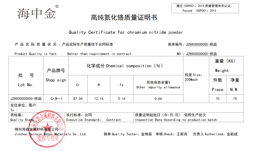產(chǎn)品名稱(chēng):氮化鉻(CrN)