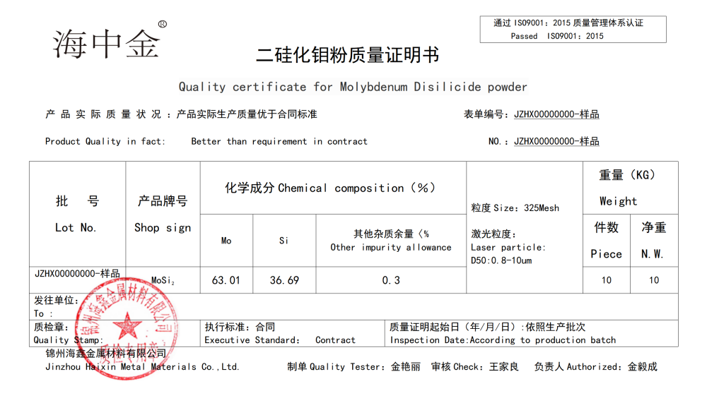產(chǎn)品名稱:二硅化鉬(MoSi2