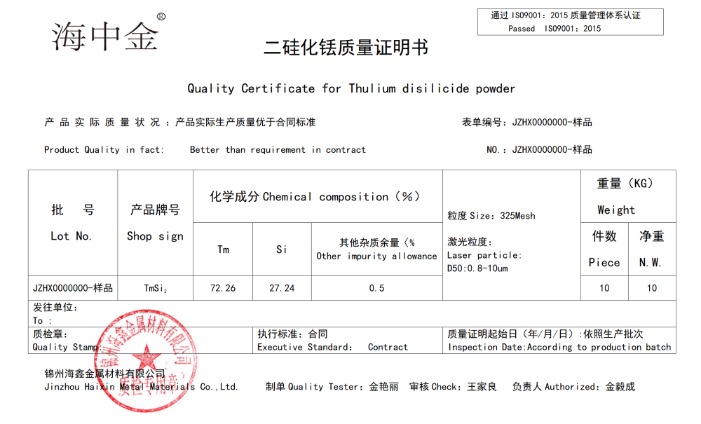 產(chǎn)品名稱:二硅化銩(TmSi2)