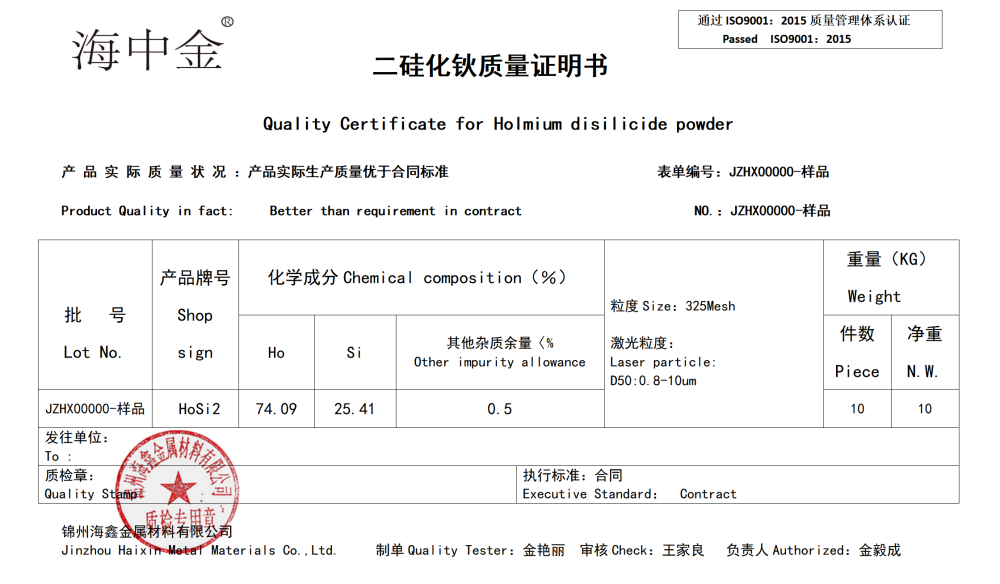 產(chǎn)品名稱:二硅化鈥(HoSi2)