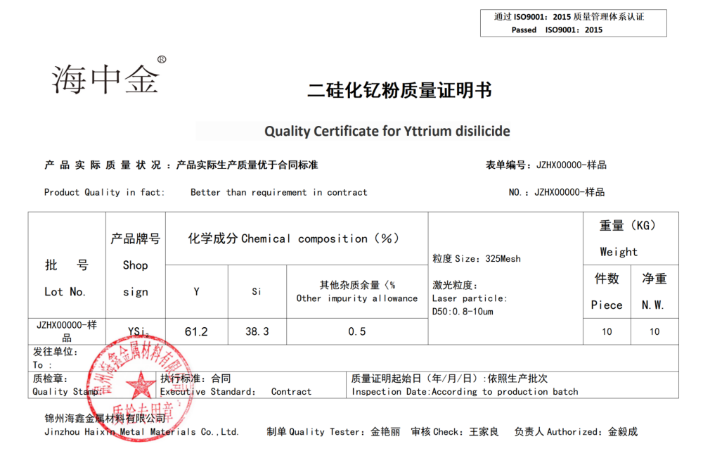 產(chǎn)品名稱:二硅化釔(YSi2)