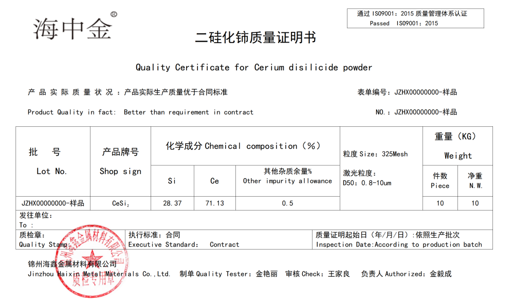 產(chǎn)品名稱:二硅化鈰(CeSi2)